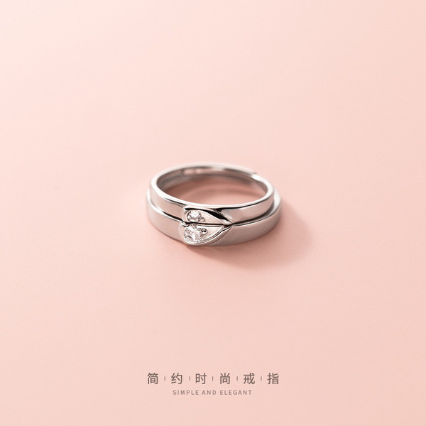 s925 sterling silver chic rhinestone shell silver adjustable sweet cute ring